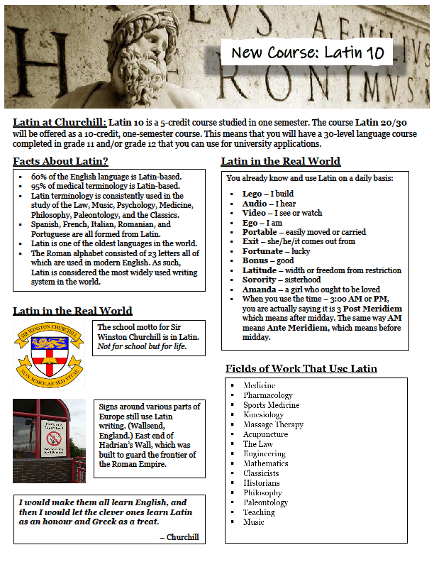 NOTE: If students have previous experience with Latin, please make an appointment with the Latin teacher at the beginning of the school year, before classes commence, to determine which course level is most appropriate.