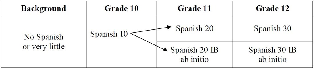Successful completion of this course will make students eligible to participate in a three month exchange trip to Spain/Mexico during the Grade 11 year.